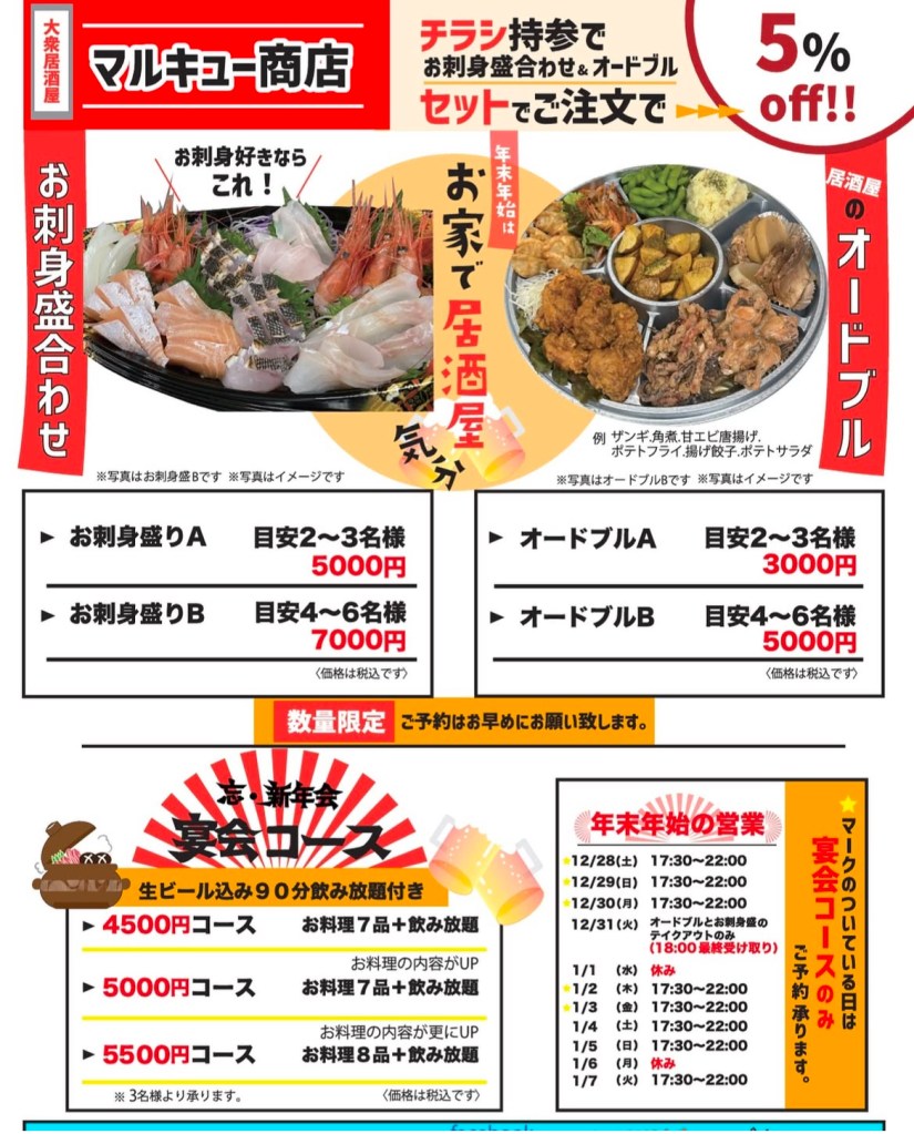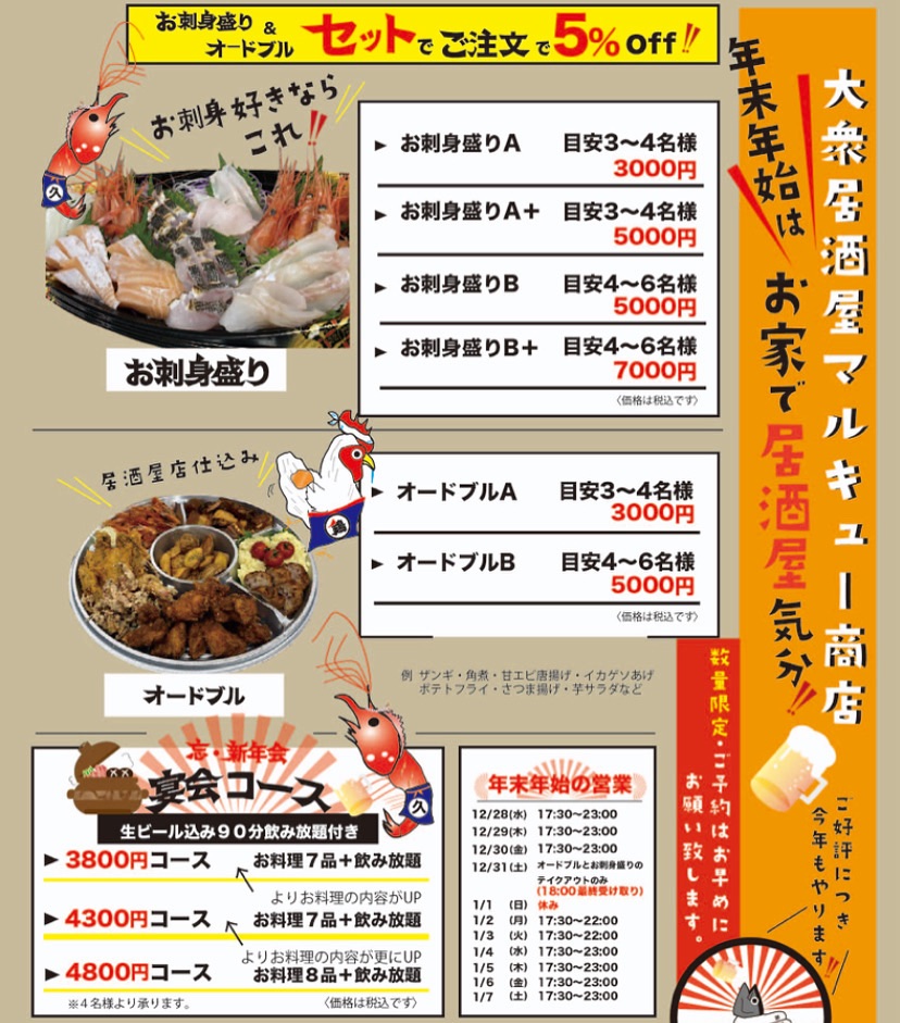 大衆居酒屋マルキュー商店 年末チラシ作成